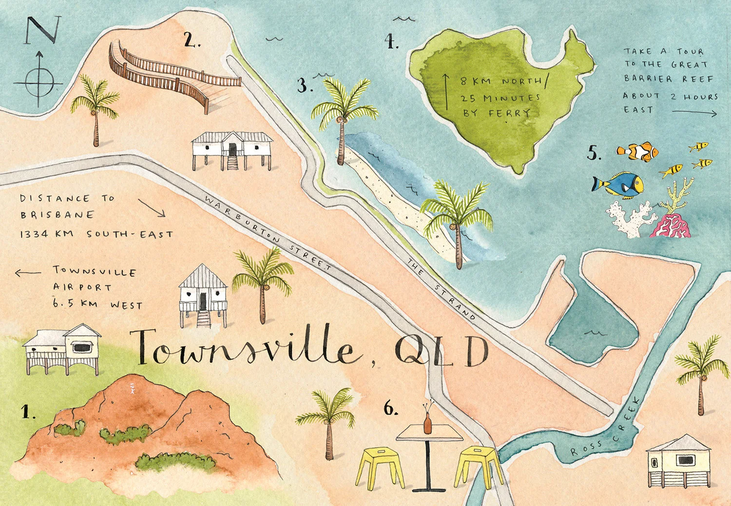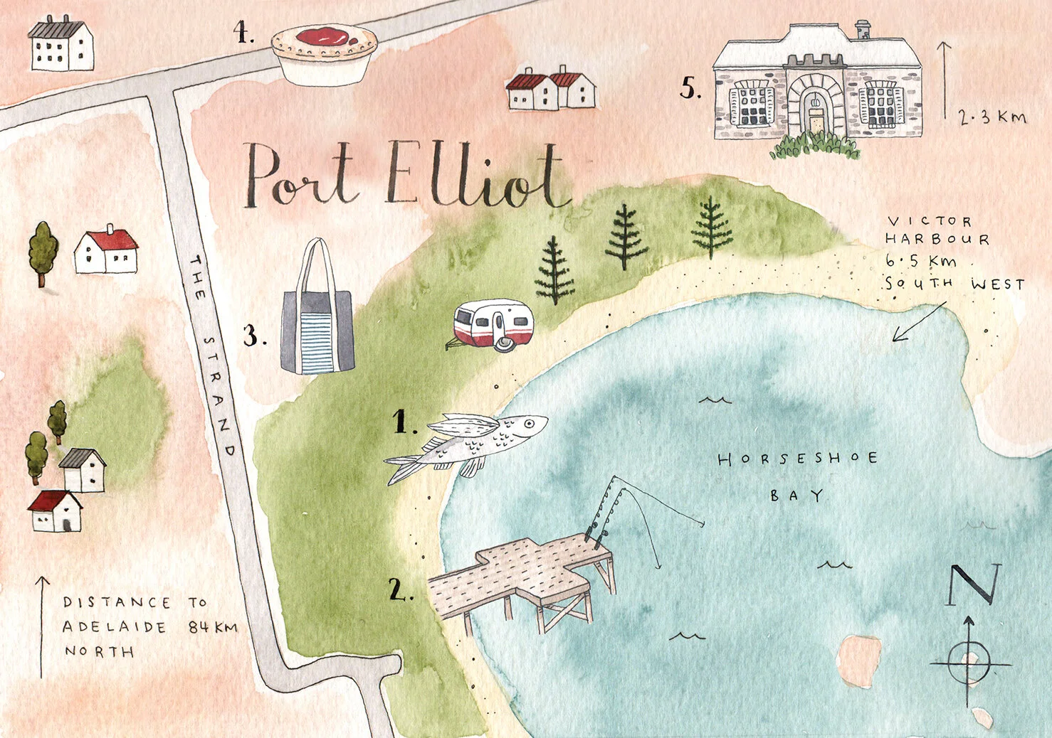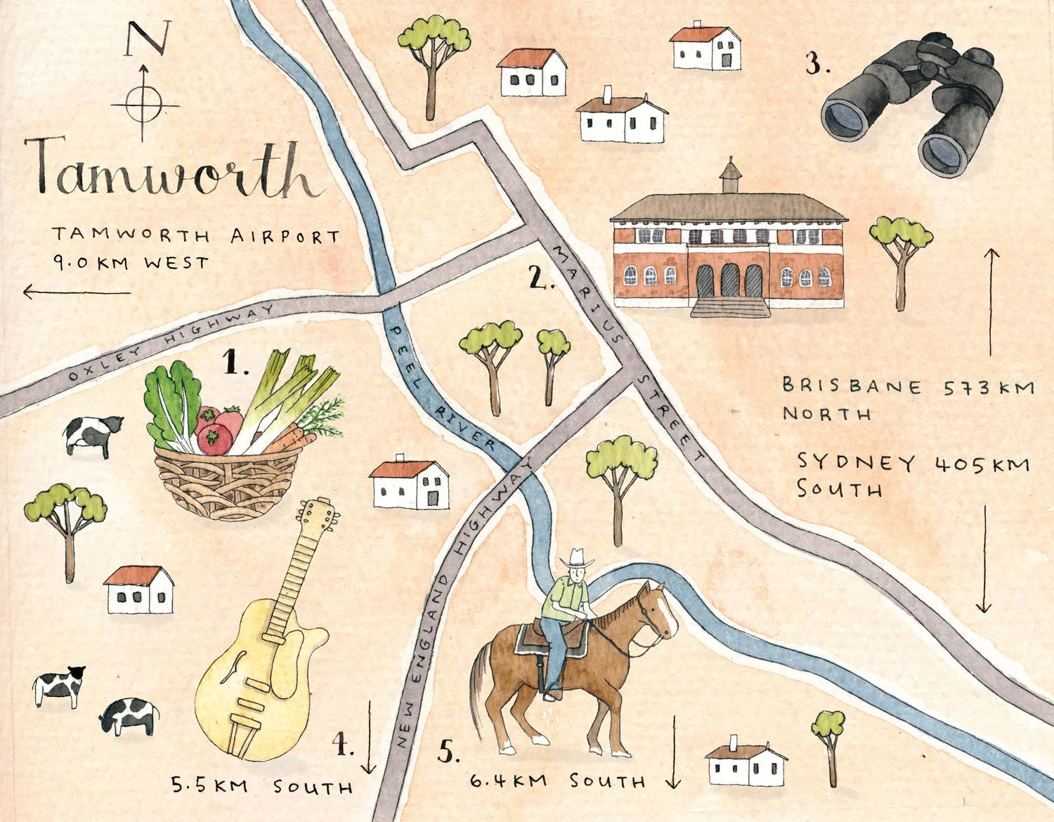 Watercolour maps of regional towns across Australia, monthly for Country Style Magazine (Bauer Media).